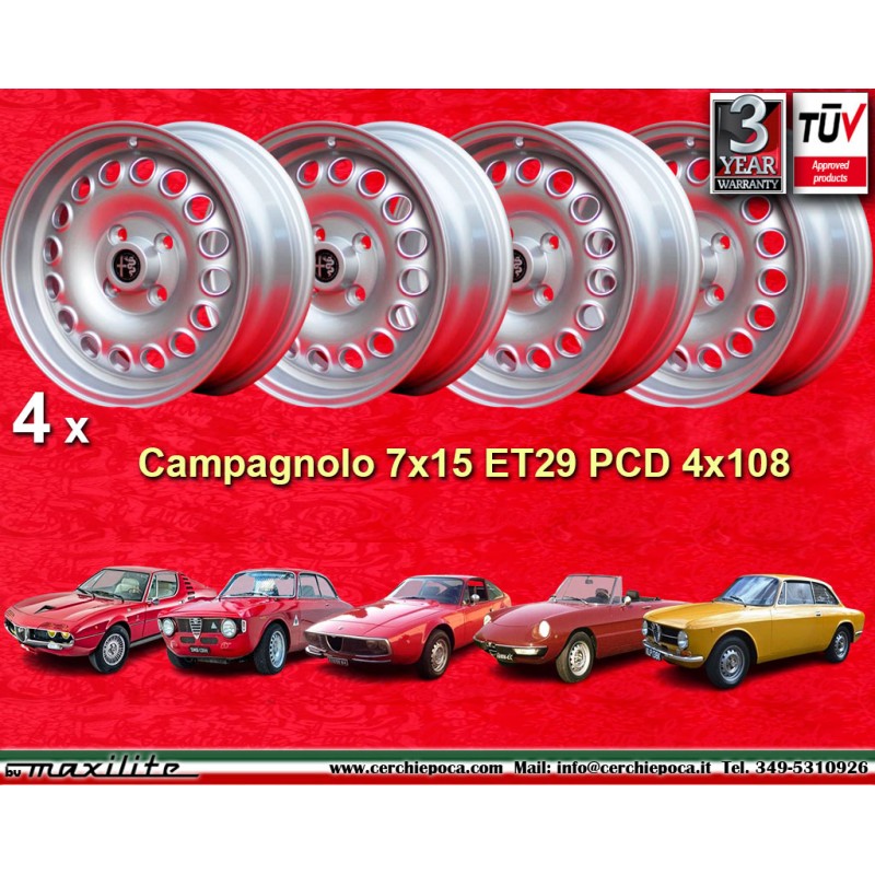 4 Felgen Campagnolo 7x15 4x108 Alfa Romeo GTA GTA 105 Coupe Spider GT GTC Montreal silverEmpfänger :
