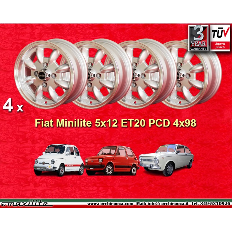 4 Felgen Minilite 5x12 4x98 Fiat 126 126 600 850 silver/diamond cutEmpfänger :