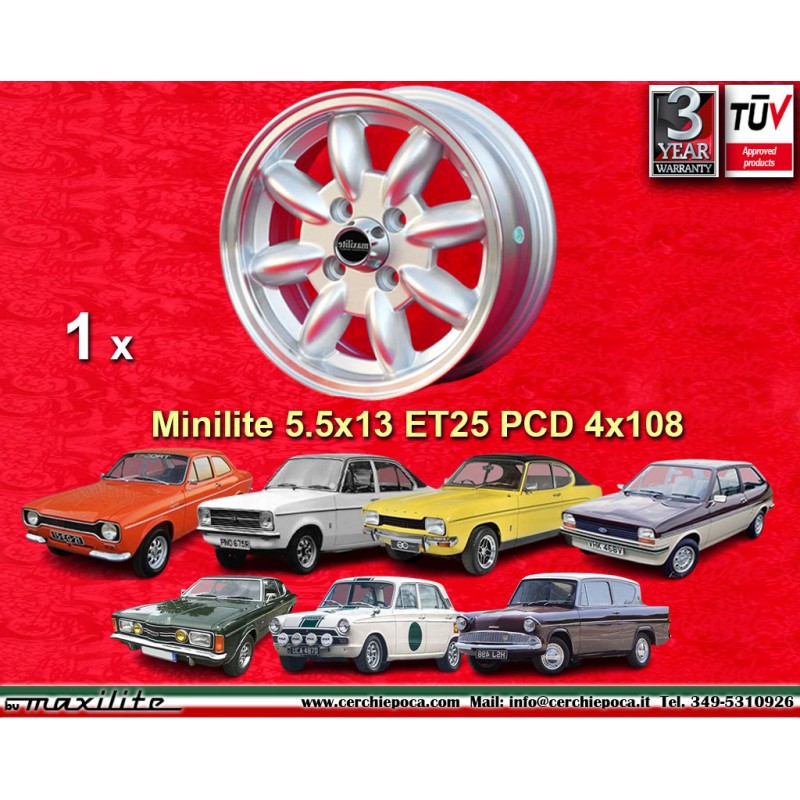 Design Minilite in silver/diamond cut Finish Abmessungen 5.5x13 Lochkreis PCD 4x108 offset ET25 Zentrallochdurchmesser 63.4 mm Einzelfelgengewicht Kg 4.8. Hersteller: Maxilite. Herstellergarantie 3 Jahre. Homologationszertifikate: TUV. Ruckgabe und Ruckerstattung fur unbenutzte Produkte ohne Gebrauchsspuren in der Originalverpackung gemaß den gesetzlichen Bestimmungen moglich.
