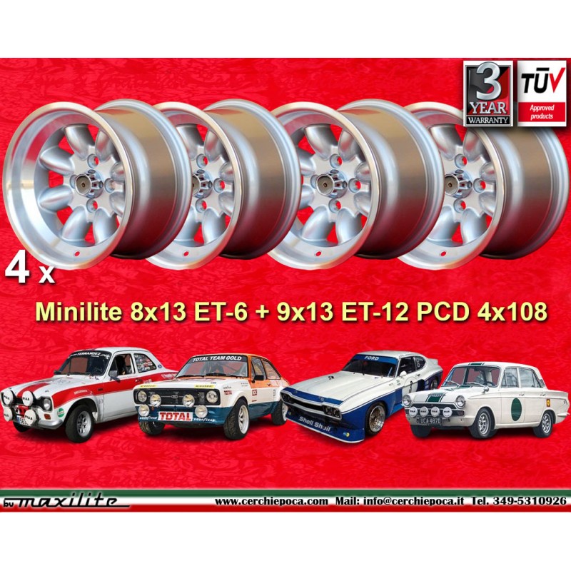 4 Felgen Minilite 8x13 + 9x13 4x108 Ford Escort Escort Mk1-2 Capri Cortina
