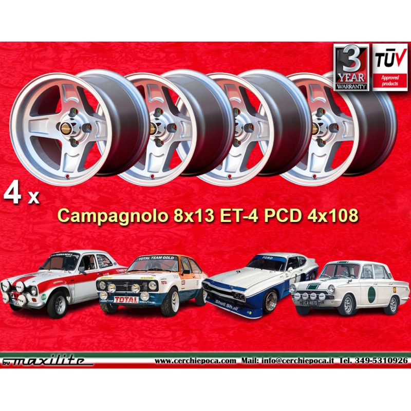 4 Felgen Campagnolo 8x13 4x108 Ford Alfa Romeo GT GT GTA GTC 105 Ford Escort Mk1 2 Capri Cortina Taunus TC silver