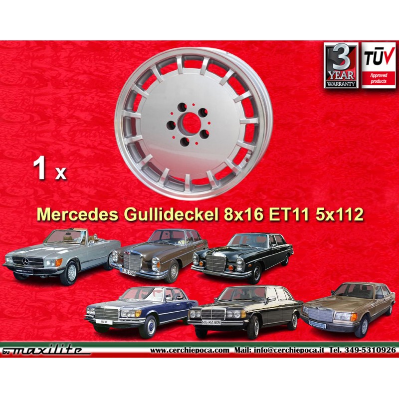 1 Felge Gullideckel 8x16 5x112 Mercedes 123 123 107 108 109 116 126 silver/diamond cut