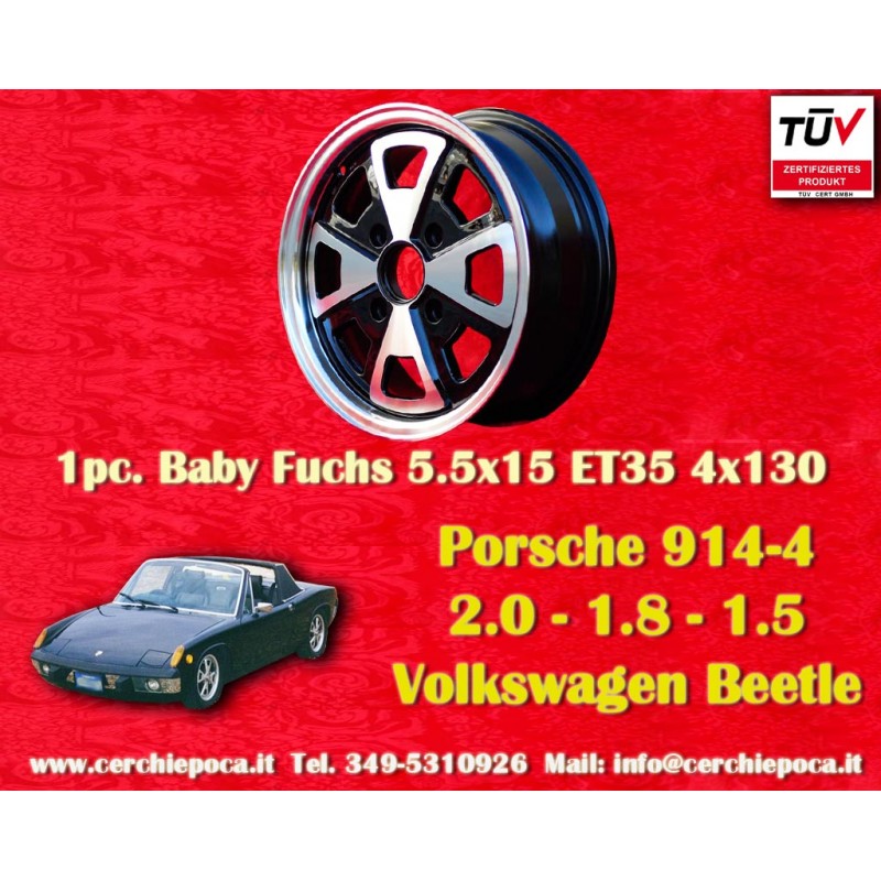 1 Felge Baby Fuchs 5.5x15 4x130 Volkswagen Porsche 914-4 914-4 VW Beetle 1968-- Karmann Ghia Typ 34 black/diamond cut