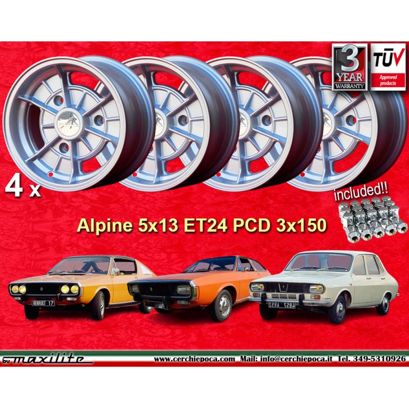 4 Felgen Alpine 5x13 + Radschrauben KM15 126 3x150 Renault R12 R12 R15 R16 R17