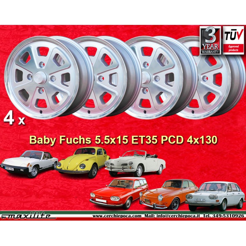 4 Felgen Babyfuchs 5.5x15 4x130 Volkswagen Porsche 914-4 914-4 VW Beetle 1968-- Karmann Ghia Typ 34 silver/diamond cut
