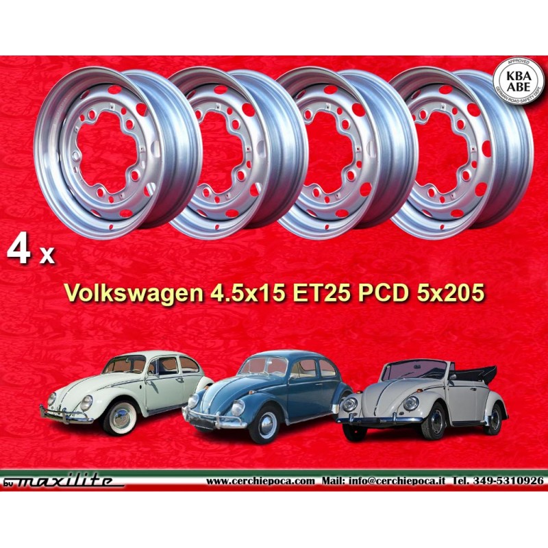 4 Felgen OE 4.5x15 5x205 Volkswagen VW VW 1950-67 4.5x15 PCD 5x205 ET25 ABE silver. silver
