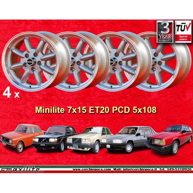 4 Felgen Minilite 7x15 5x108 Volvo 100 100 200 700 900 silver/diamond cutEmpfänger :