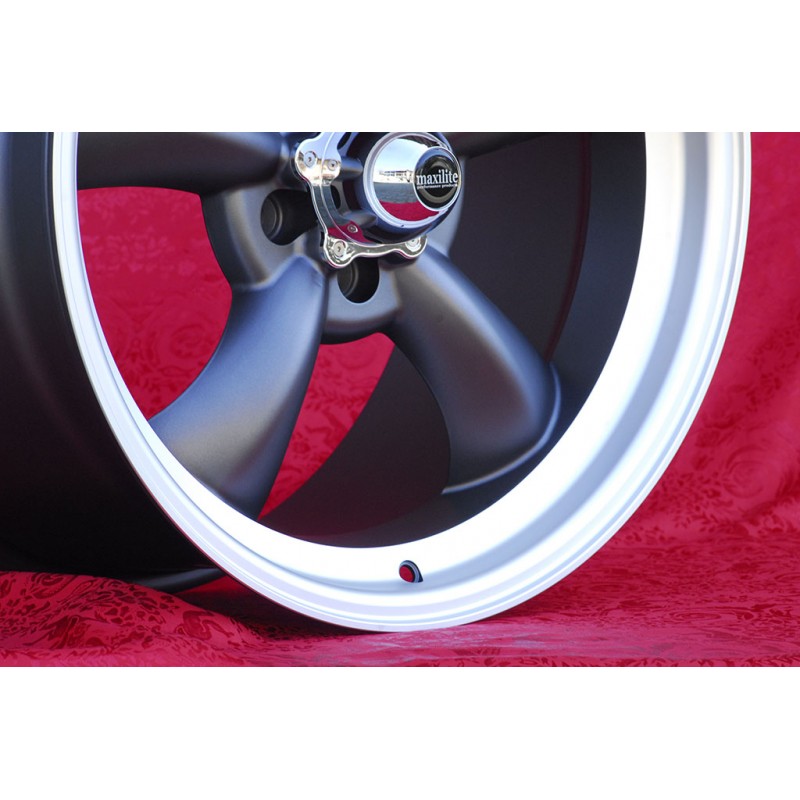 Design Torq Thrust finish: anthracite/diamond cut. Sizes: 2 wheels 9x19 offset ET35 weight Kg 12.4 + 2 wheels 9x19 offset ET45 weight Kg 12.4 with PCD 5x114.3 center bore: 70.6 mm. Suitable for: Mustang S197 (2005-14) LAE (2015-) Produced by: Maxilite. Certificates of homologation: YES. Warranty 3 years by manufacturer. Possible return and refund for unused products without signs of use, in the original packaging, according to the terms of the law.