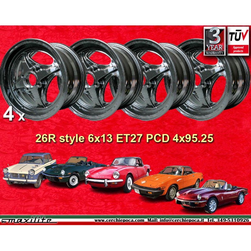 4 wheels 26R 6x13 4x95.25 Lotus Triumph Spitfire Spitfire TR7 Herald GT6 Vitesse Lotus Elan Europa Seven Mk1-3 black