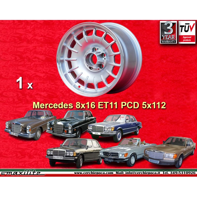 Design Barock silver/polished finish size 8x16 PCD 5x112 offset ET11 center bore 66.6 mm weight Kg 10.3. Producer: Maxilite. Warranty 3 years by manufacturer. Certificates of homologation: TUV. Possible return and refund for unused products without signs of use, in the original packaging, according to the terms of the law.
