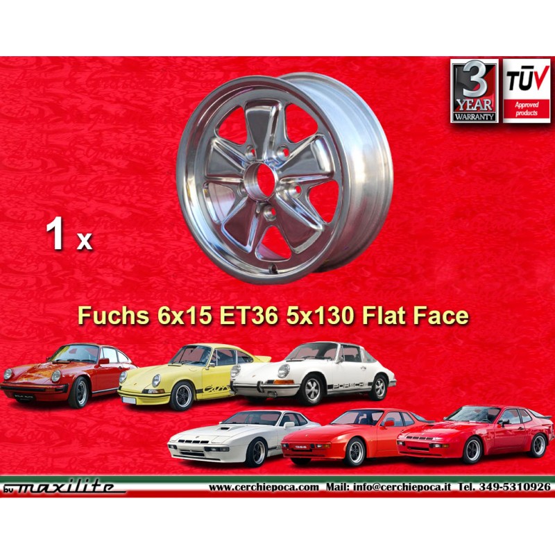 Design Fuchs fully polished finish size 6x15 PCD 5x130 offset ET36 center bore 71.6 mm weight Kg 6.1. Producer: Maxilite. Warranty 3 years by manufacturer. Certificates of homologation: TUV. Possible return and refund for unused products without signs of use, in the original packaging, according to the terms of the law.