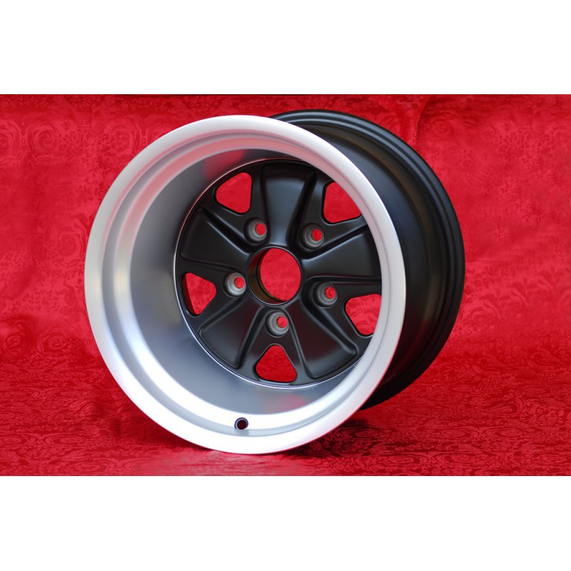 Design Fuchs finish: matt black/diamond cut. Sizes: 2 wheels 9x15 offset ET15 weight Kg 7.7 + 2 wheels 11x15 offset ET-27 weight Kg 7.9 with PCD 5x130 center bore: 71.6 mm. Suitable for: 911 SC Carrera -1987 Produced by: Maxilite. Certificates of homologation: YES. Warranty 3 years by manufacturer. Possible return and refund for unused products without signs of use, in the original packaging, according to the terms of the law.