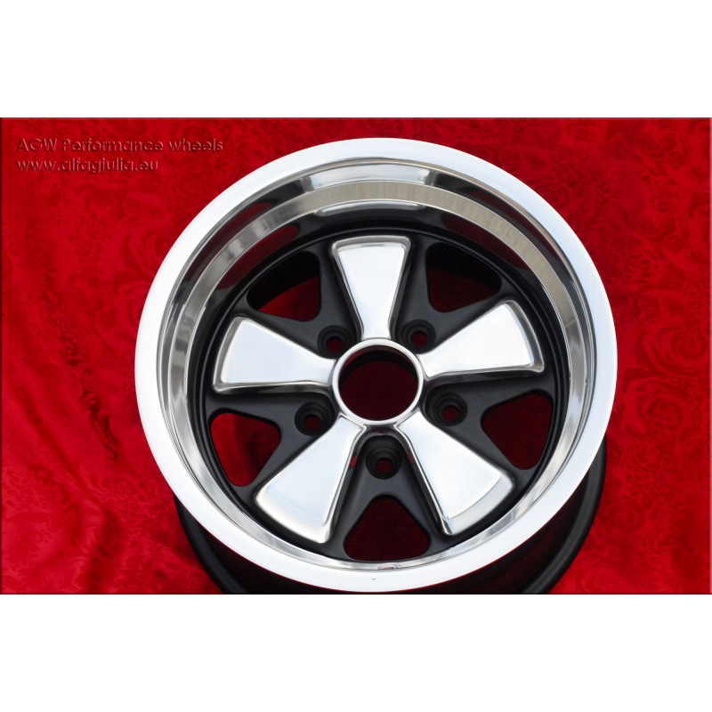 Design Fuchs finish: RSR style. Sizes: 2 wheels 8x17 offset ET10.6 weight Kg 9.8 + 2 wheels 10x17 offset ET-27 weight Kg 11.8 with PCD 5x130 center bore: 71.6 mm. Suitable for: 911 SC Carrera -1989 turbo -1987 Produced by: Maxilite. Certificates of homologation: YES. Warranty 3 years by manufacturer. Possible return and refund for unused products without signs of use, in the original packaging, according to the terms of the law.
