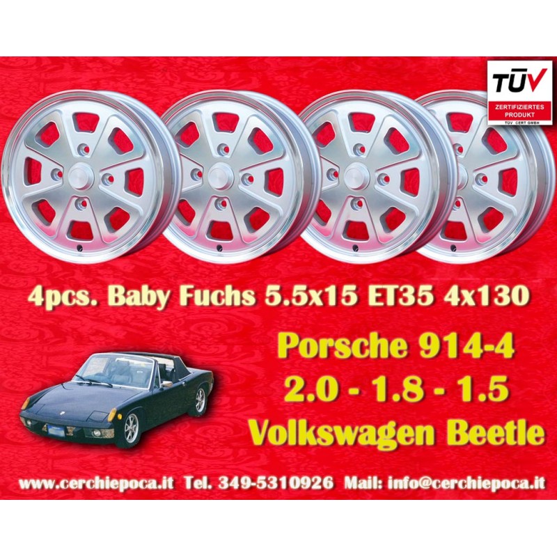 4 wheels Babyfuchs 5.5x15 4x130 Volkswagen Porsche 914-4 914-4 VW Beetle 1968-- Karmann Ghia Typ 34 silver/diamond cut