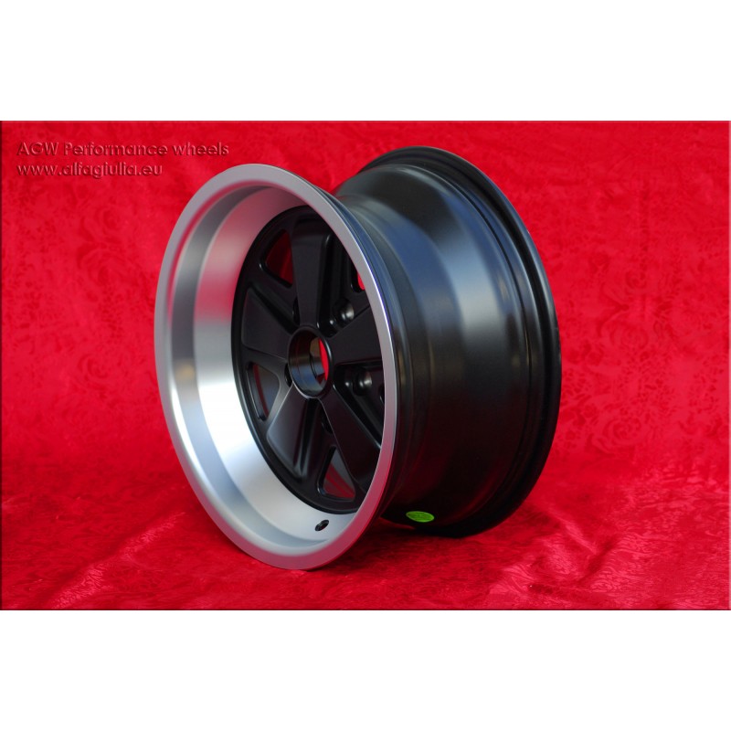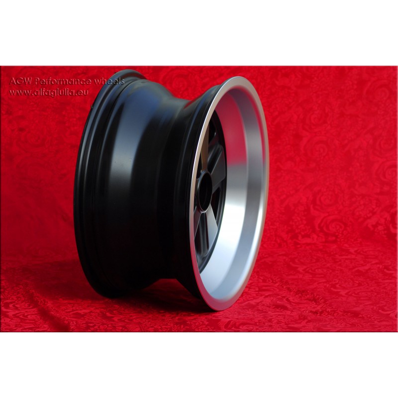 Design Fuchs finish: matt black/diamond cut. Sizes: 2 wheels 8x16 offset ET10.6 weight Kg 7.9 + 2 wheels 9x16 offset ET15 weight Kg 8.3 with PCD 5x130 center bore: 71.6 mm. Suitable for: 911 SC Carrera -1989 turbo -1987 Produced by: Maxilite. Certificates of homologation: YES. Warranty 3 years by manufacturer. Possible return and refund for unused products without signs of use, in the original packaging, according to the terms of the law.