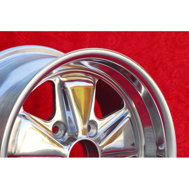 Design Fuchs finish: fully polished. Sizes: 2 wheels 7x15 offset ET23.3 weight Kg 6.4 + 2 wheels 8x15 offset ET10.6 weight Kg 7.2 with PCD 5x130 center bore: 71.6 mm. Suitable for: 911 -1989 914-6 944 -1986 924 turbo-Carrera GT Produced by: Maxilite. Certificates of homologation: YES. Warranty 3 years by manufacturer. Possible return and refund for unused products without signs of use, in the original packaging, according to the terms of the law.