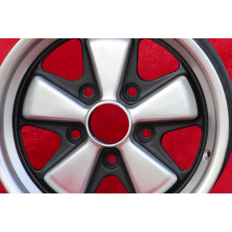 Design Fuchs finish: anodized look. Sizes: 2 wheels 7x15 offset ET23.3 weight Kg 6.4 + 2 wheels 8x15 offset ET10.6 weight Kg 7.2 with PCD 5x130 center bore: 71.6 mm. Suitable for: 911 -1989 914-6 944 -1986 924 turbo-Carrera GT Produced by: Maxilite. Certificates of homologation: YES. Warranty 3 years by manufacturer. Possible return and refund for unused products without signs of use, in the original packaging, according to the terms of the law.