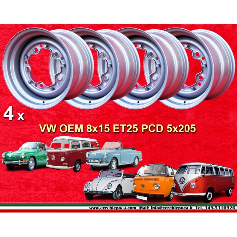4 wheels OE 8x15 5x205 Volkswagen VW VW 1950-67 8x15 PCD 5x205 ET25 silver. silverRecipient :