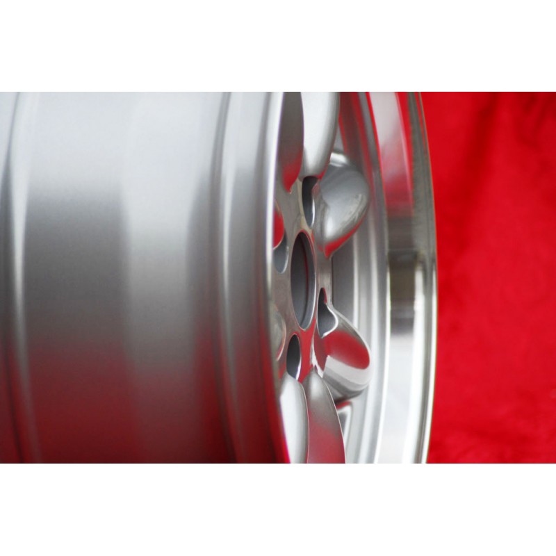 Diseno Minilite en acabado silver/diamond cut. Dimensiones: 2 llantas 7x15 offset ET5 peso Kg 6.7 + 2 llantas 8x15 offset ET-6 peso Kg 9 sistema de fijacion PCD 4x100 diametro agujero central 57.1 mm. Adecuado para los siguientes modelos: 1502-2002 1500-2000tii 2000C CA CS 3 E21 E30 Opel Kadett Manta Rekord Fabricado por: Maxilite. Certificados de homologacion: YES. Garantia 3 anos por fabricante. Posible devolucion y reembolso por productos no utilizados sin signos de uso, en el embalaje original, segun los terminos de la ley.