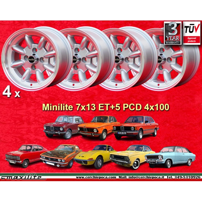 4 llantas Minilite 7x13 4x100 Opel Volkswagen BMW 1502 1502 1602 1802 2002 tii 3 E21 Kadett B-C Manta Ascona A-B GT Oly