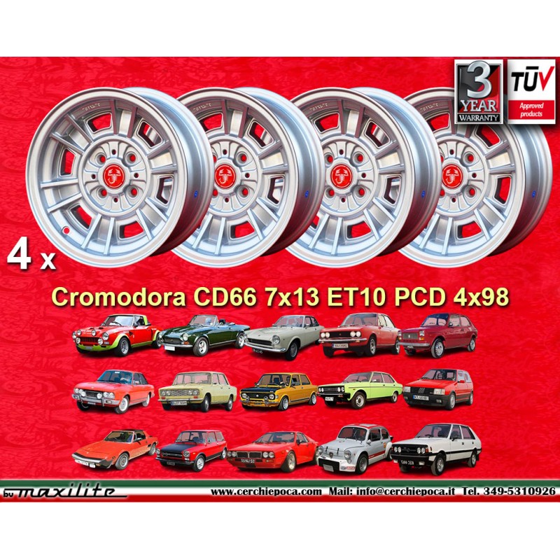 4 llantas Cromodora CD66 7x13 4x98 Lancia Autobianchi Fiat 124 124 Abarth Berlina Coupe Spider 125 127 128 131 X19 A112