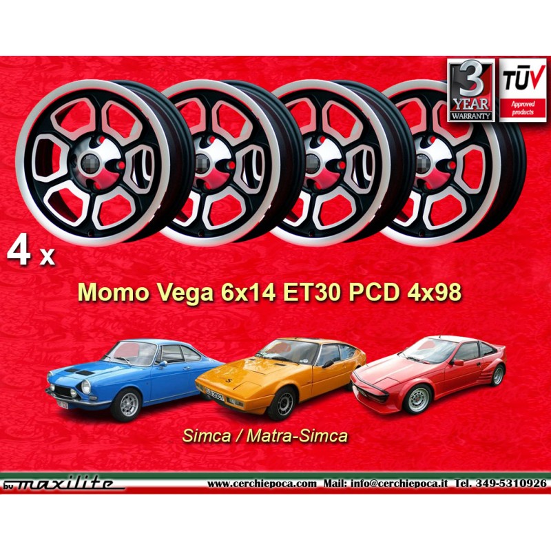 Diseno Vega en acabado matt black/diamond cut dimensiones 6x14 sistema de fijacion PCD 4x98 offset ET23 diametro agujero central 58.6 mm llanta simple peso Kg 5.9. Fabricado por: Maxilite. Garantia 3 anos por fabricante. Certificados de homologacion: TUV. Posible devolucion y reembolso por productos no utilizados sin signos de uso, en el embalaje original, segun los terminos de la ley.