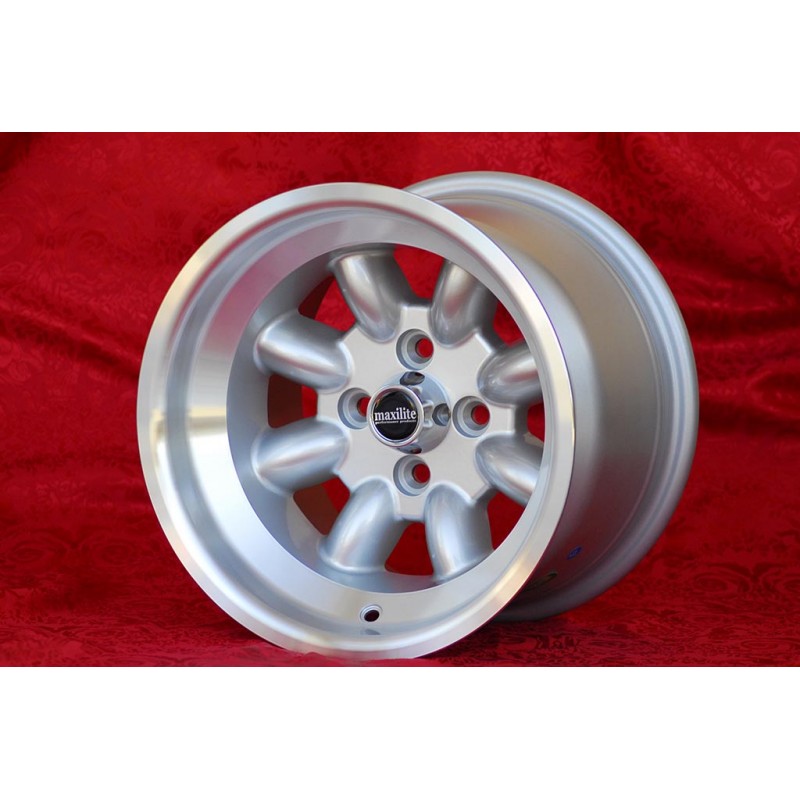 Diseno Minilite en acabado silver/diamond cut. Dimensiones: 2 llantas 8x13 offset ET-6 peso Kg 6.8 + 2 llantas 9x13 offset ET-12 peso Kg 7.5 sistema de fijacion PCD 4x98 diametro agujero central 58.6 mm. Adecuado para los siguientes modelos: 124 Spider Coupe X19 Fabricado por: Maxilite. Certificados de homologacion: YES. Garantia 3 anos por fabricante. Posible devolucion y reembolso por productos no utilizados sin signos de uso, en el embalaje original, segun los terminos de la ley.