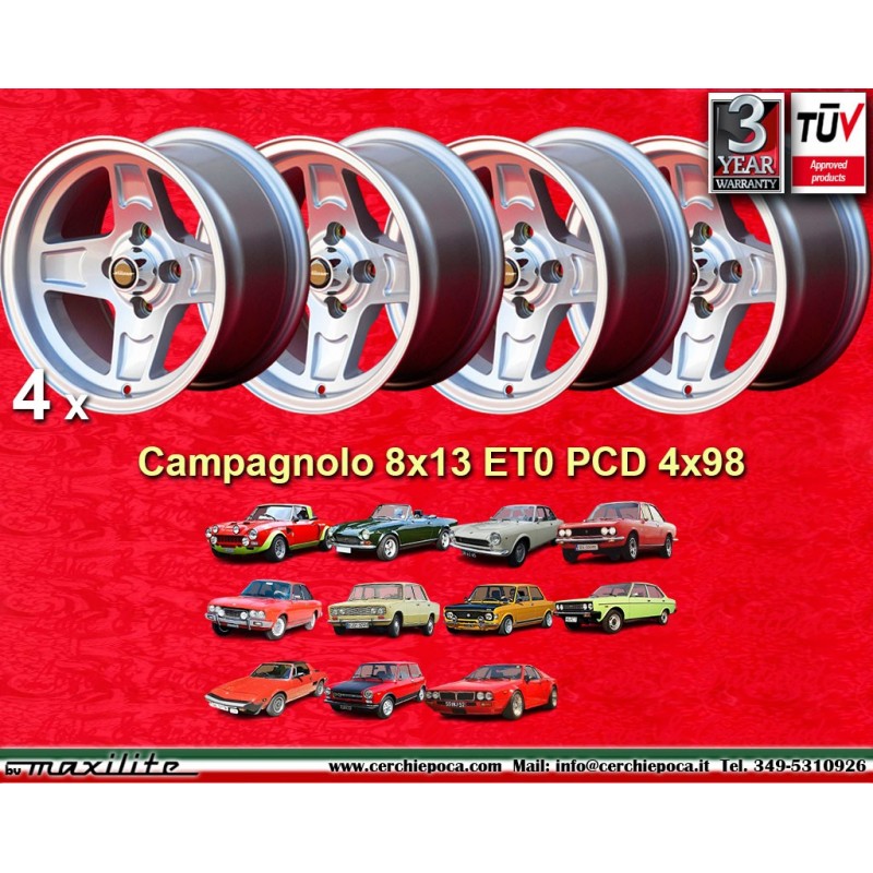 4 llantas Campagnolo 8x13 4x98 Lancia Autobianchi Fiat 124 124 Abarth Berlina Coupe Spider 125 127 128 131 X19 A112 Bet