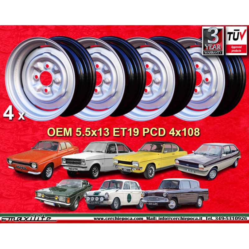 4 llantas OE steel 5.5x13 4x108 Ford Escort Escort Mk1-2 Capri Cortina Taunus TC silver