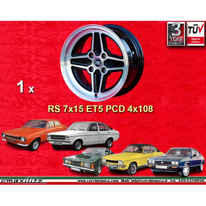 1 llanta RS 7x15 4x108 Ford Escort Escort Mk1-2 Capri Cortina black/diamond cut