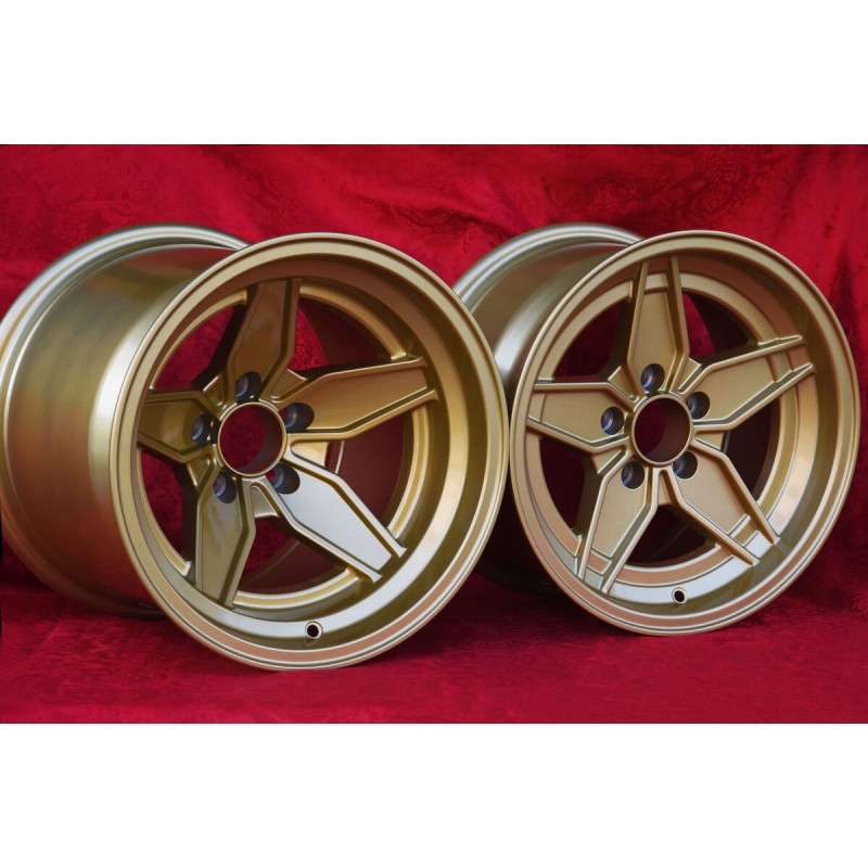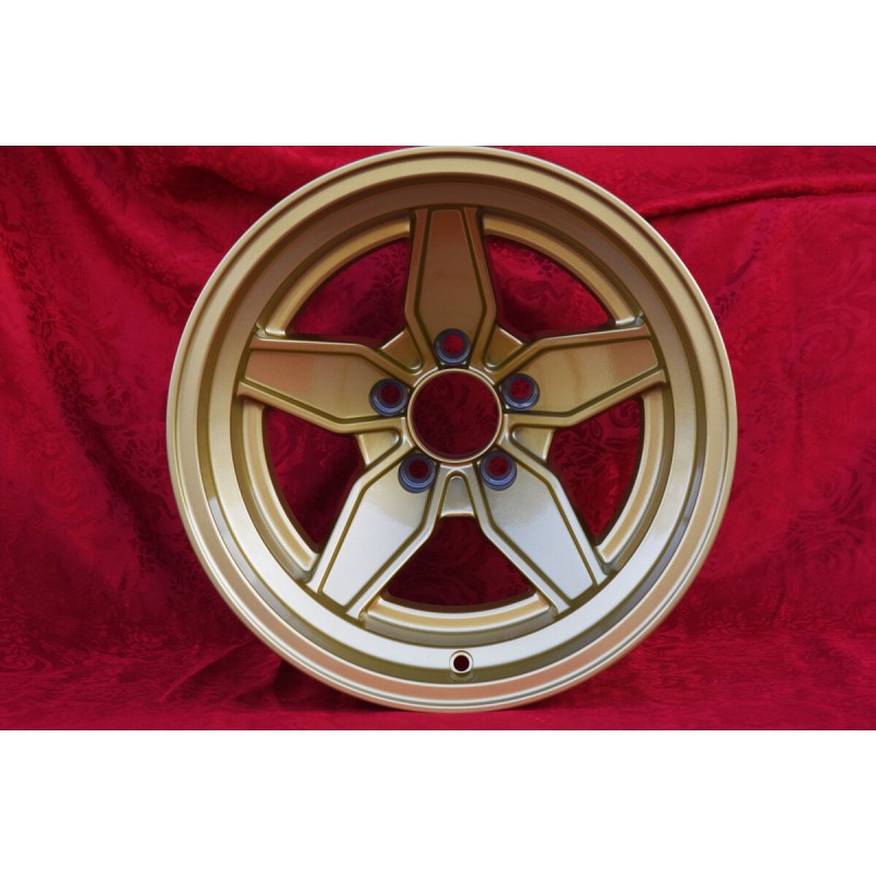 Diseno Stratos en acabado gold. Dimensiones: 2 llantas 8x15 offset ET15 peso Kg 8.3 + 2 llantas 12x15 offset ET-25 peso Kg 9 sistema de fijacion PCD 5x108 diametro agujero central 67.1 mm. Adecuado para los siguientes modelos: Stratos Gr4 FERRARI 308 GTB Gr4 Fabricado por: Maxilite. Certificados de homologacion: YES. Garantia 3 anos por fabricante. Posible devolucion y reembolso por productos no utilizados sin signos de uso, en el embalaje original, segun los terminos de la ley.