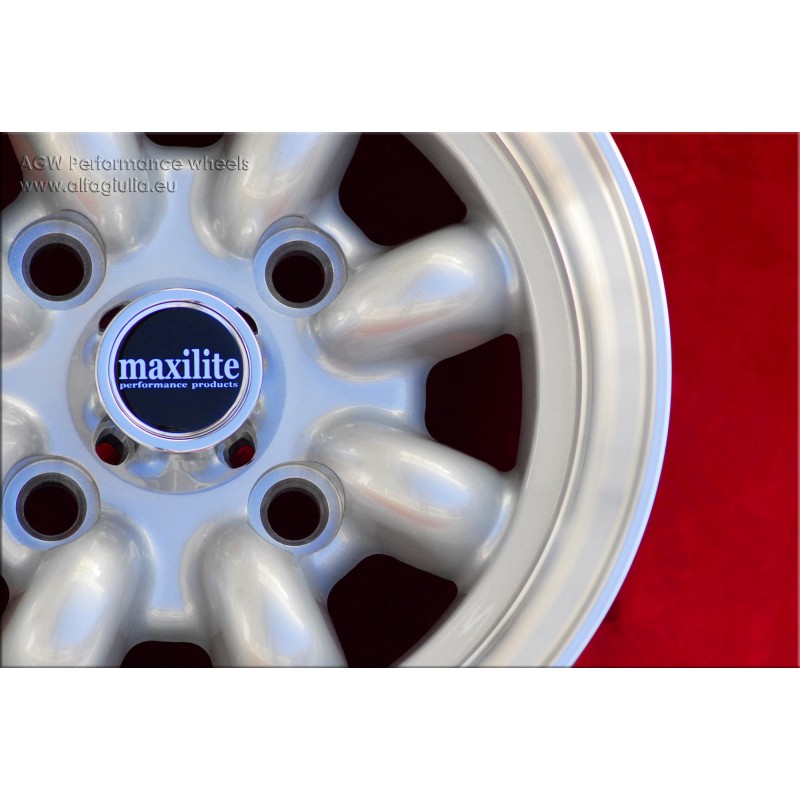 Design Minilite, acabado: silver/diamond cut, tamano: 5x10, offset: ET12 peso Kg 4, PCD 4x101.6, orificio central: 65.1 mm. Viene con kit de tuercas de rueda: KM2, con tipo de hilo: 126. Adecuado para coches: Mk1-3 850 1000. Producido por: Maxilite ATENCION: Comprueba que el kit de tornillos es el correcto antes de comprar. Garantia 3 anos por fabricante. Certificacion TUV disponible (certificado de piezas). Disponible tambien la certificacion suiza. Posible devolucion y reembolso por productos no utilizados sin signos de uso, en el embalaje original, segun los terminos de la ley.
