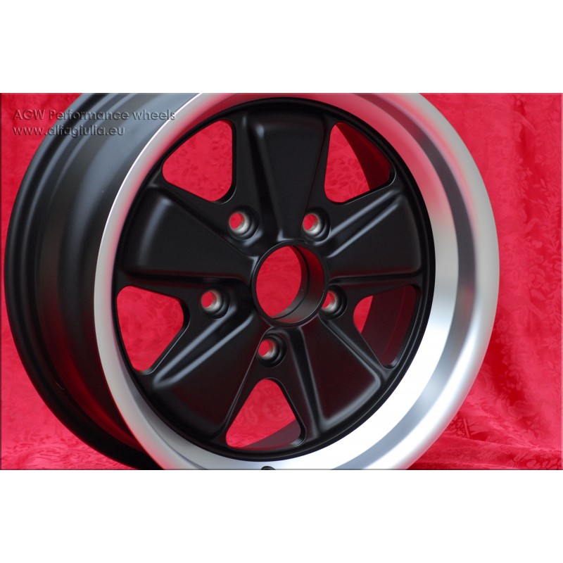 Diseno Fuchs en acabado matt black/diamond cut. Dimensiones: 2 llantas 6x15 offset ET36 peso Kg 6.2 + 2 llantas 7x15 offset ET23.3 peso Kg 6.5 sistema de fijacion PCD 5x130 diametro agujero central 71.6 mm. Adecuado para los siguientes modelos: 911 -1989 914-6 944 -1986 924 turbo-Carrera GT Fabricado por: Maxilite. Certificados de homologacion: YES. Garantia 3 anos por fabricante. Posible devolucion y reembolso por productos no utilizados sin signos de uso, en el embalaje original, segun los terminos de la ley.