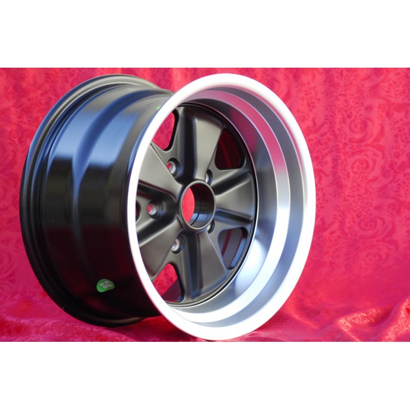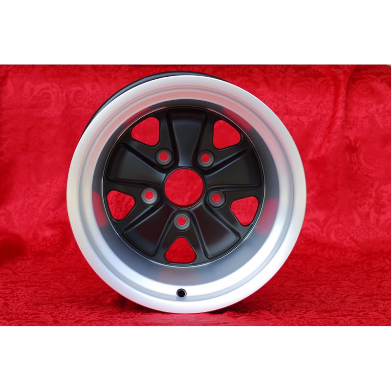 Diseno Fuchs en acabado matt black/diamond cut. Dimensiones: 2 llantas 9x15 offset ET15 peso Kg 7.7 + 2 llantas 11x15 offset ET-27 peso Kg 7.9 sistema de fijacion PCD 5x130 diametro agujero central 71.6 mm. Adecuado para los siguientes modelos: 911 SC Carrera -1987 Fabricado por: Maxilite. Certificados de homologacion: YES. Garantia 3 anos por fabricante. Posible devolucion y reembolso por productos no utilizados sin signos de uso, en el embalaje original, segun los terminos de la ley.