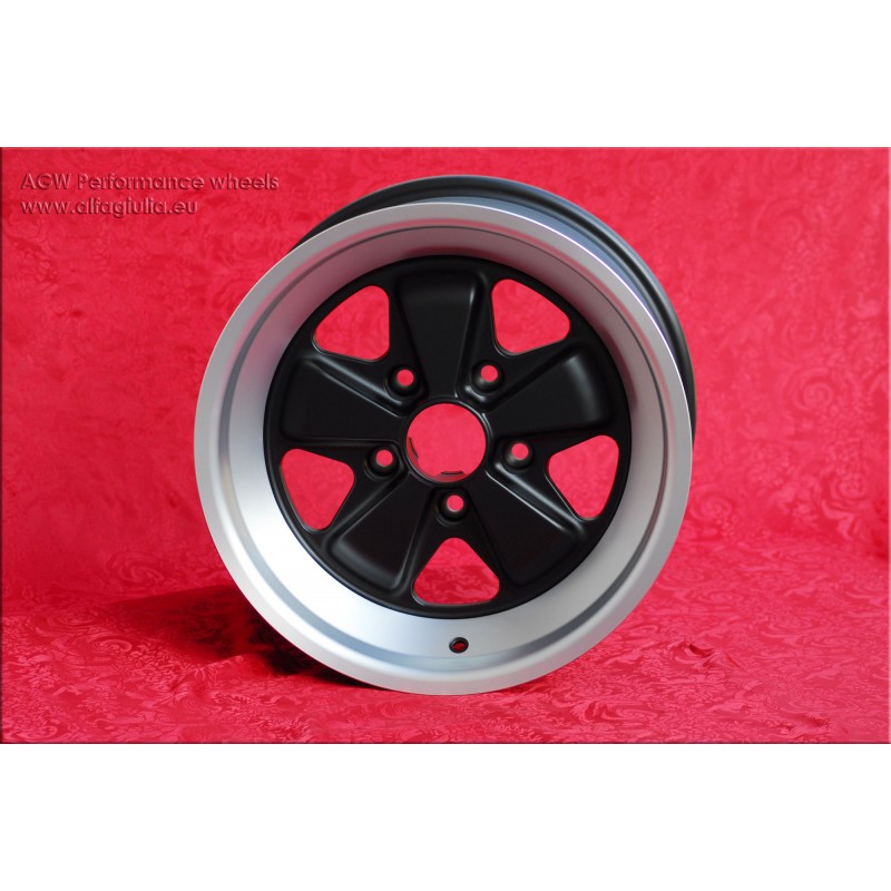 Diseno Fuchs en acabado matt black/diamond cut. Dimensiones: 2 llantas 7x16 offset ET23.3 peso Kg 7.4 + 2 llantas 9x16 offset ET15 peso Kg 8.3 sistema de fijacion PCD 5x130 diametro agujero central 71.6 mm. Adecuado para los siguientes modelos: 911 -1989 914-6 944 -1986 turbo -1989 Fabricado por: Maxilite. Certificados de homologacion: YES. Garantia 3 anos por fabricante. Posible devolucion y reembolso por productos no utilizados sin signos de uso, en el embalaje original, segun los terminos de la ley.
