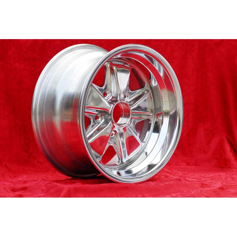 Diseno Fuchs en acabado fully polished. Dimensiones: 2 llantas 7x15 offset ET23.3 peso Kg 6.4 + 2 llantas 8x15 offset ET10.6 peso Kg 7.2 sistema de fijacion PCD 5x130 diametro agujero central 71.6 mm. Adecuado para los siguientes modelos: 911 -1989 914-6 944 -1986 924 turbo-Carrera GT Fabricado por: Maxilite. Certificados de homologacion: YES. Garantia 3 anos por fabricante. Posible devolucion y reembolso por productos no utilizados sin signos de uso, en el embalaje original, segun los terminos de la ley.