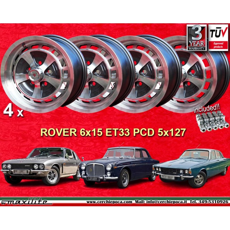 4 llantas XJS 6x15 + tuercas KM19 126 5x127 Jensen Rover P5 P5 P6 Interceptor