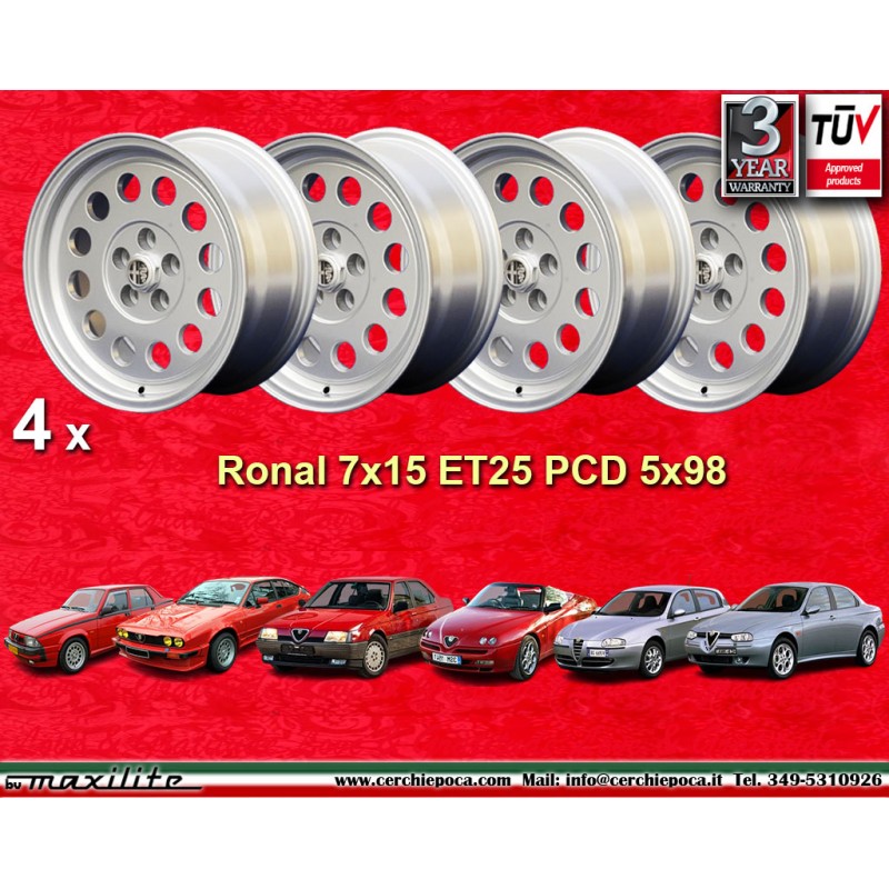 4 jantes Ronal A1 7x15 5x98 Alfa Romeo Alfetta Alfetta GTV 2.5 75 1.8T 2.0i 3.0i 164 Spider-GTV Type 916 silver