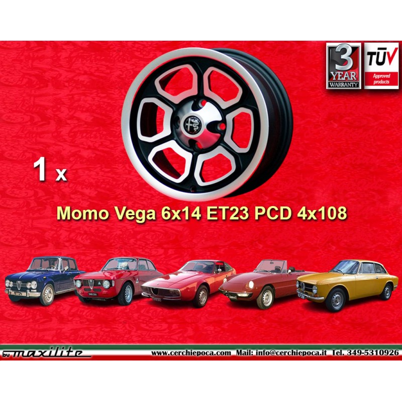 1 jante Vega 6x14 4x108 Alfa Romeo GT GT GTA 105 Berlina Giulia Coupe Spider GTC matt black/diamond cutDestinataire :