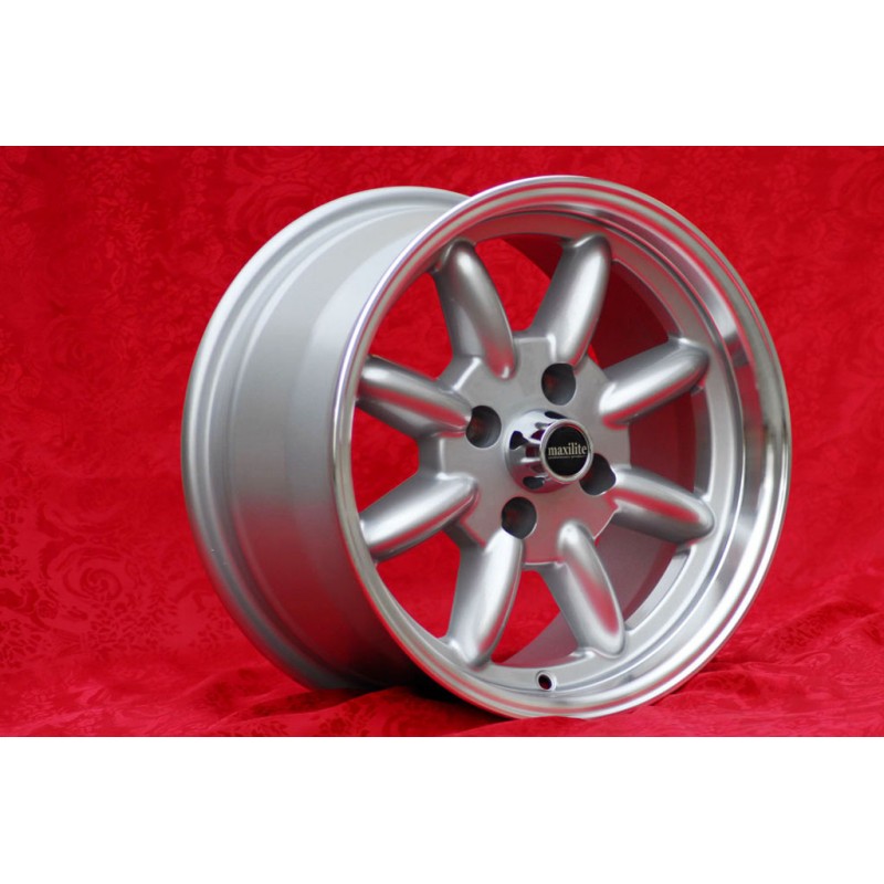 Design Minilite en finition silver/diamond cut dimensions 8x15 systeme de fixation PCD 4x100 deport ET-6 diametre du trou central 57.1 mm poids de la jante simple Kg 9. Fabrique par: Maxilite. Garantie 3 ans par fabricant. Certificats d'homologation: TUV. Retour et remboursement possible pour les produits non utilises sans traces d'utilisation, dans l'emballage d'origine, selon les termes de la loi.