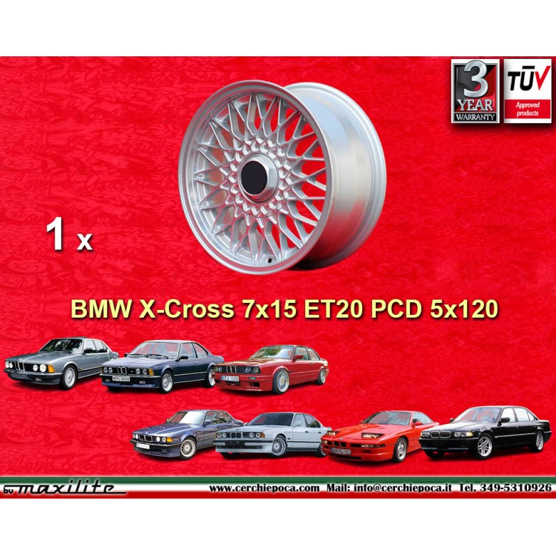 Design BBS en finition silver dimensions 7x15 systeme de fixation PCD 5x120 deport ET20 diametre du trou central 72.6 mm poids de la jante simple Kg 7.6. Fabrique par: Maxilite. Garantie 3 ans par fabricant. Certificats d'homologation: TUV. Retour et remboursement possible pour les produits non utilises sans traces d'utilisation, dans l'emballage d'origine, selon les termes de la loi.