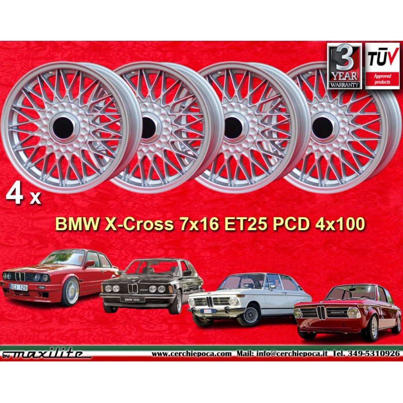 Design BBS en finition silver dimensions 7x16 systeme de fixation PCD 4x100 deport ET25 diametre du trou central 57.1 mm poids de la jante simple Kg 8.6. Fabrique par: Maxilite. Garantie 3 ans par fabricant. Certificats d'homologation: TUV. Retour et remboursement possible pour les produits non utilises sans traces d'utilisation, dans l'emballage d'origine, selon les termes de la loi.