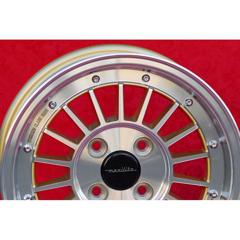 Design WCHE en finition gold/chromed/polished dimensions 5.5x13 systeme de fixation PCD 4x98 deport ET7 diametre du trou central 58.6 mm poids de la jante simple Kg 4.8. Fabrique par: Maxilite. Garantie 3 ans par fabricant. Certificats d'homologation: TUV. Retour et remboursement possible pour les produits non utilises sans traces d'utilisation, dans l'emballage d'origine, selon les termes de la loi.