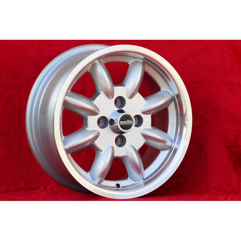 Design Minilite en finition silver/diamond cut dimensions 6x14 systeme de fixation PCD 4x108 deport ET16 diametre du trou central 63.4 mm poids de la jante simple Kg 6.2. Fabrique par: Maxilite. Garantie 3 ans par fabricant. Certificats d'homologation: TUV. Retour et remboursement possible pour les produits non utilises sans traces d'utilisation, dans l'emballage d'origine, selon les termes de la loi.