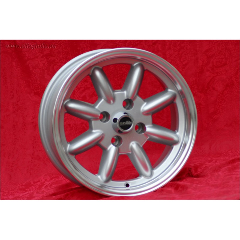 Design Minilite en finition silver/diamond cut dimensions 7x15 systeme de fixation PCD 4x108 deport ET5 diametre du trou central 63.4 mm poids de la jante simple Kg 6.7. Fabrique par: Maxilite. Garantie 3 ans par fabricant. Certificats d'homologation: TUV. Retour et remboursement possible pour les produits non utilises sans traces d'utilisation, dans l'emballage d'origine, selon les termes de la loi.
