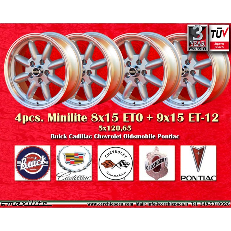 4 jantes Minilite 8x15 + 9x15 5x120.65 Chevrolet Camaro Camaro Nova Chevelle El Camino BelAir Caprice Impala Corvette