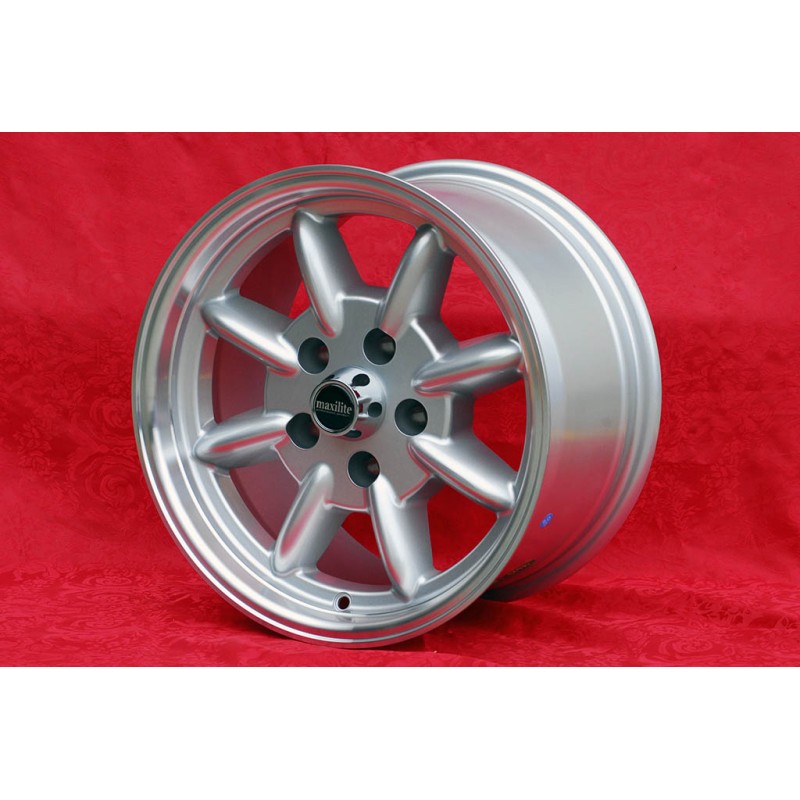 Design Minilite en finition silver/diamond cut. Dimensions: 2 jantes 8x15 deport ET0 poids Kg 9 + 2 jantes 9x15 deport ET-12 poids Kg 9.8 systeme de fixation PCD 5x120.65 diametre du trou central 83.1 mm. Convient aux modeles suivants: Camaro Nova Chevelle El Camino BelAir Caprice Impala Corvette Fabrique par: Maxilite. Certificats d'homologation: YES. Garantie 3 ans par fabricant. Retour et remboursement possible pour les produits non utilises sans traces d'utilisation, dans l'emballage d'origine, selon les termes de la loi.