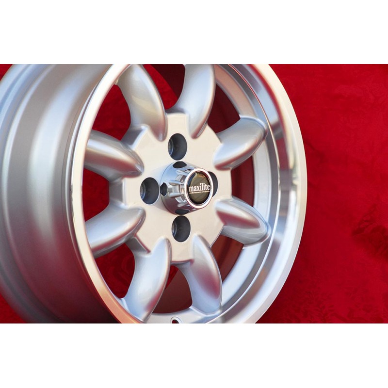 Design Minilite en finition silver/diamond cut dimensions 6x14 systeme de fixation PCD 4x100 deport ET13 diametre du trou central 57.1 mm poids de la jante simple Kg 6.7. Fabrique par: Maxilite. Garantie 3 ans par fabricant. Certificats d'homologation: TUV. Retour et remboursement possible pour les produits non utilises sans traces d'utilisation, dans l'emballage d'origine, selon les termes de la loi.