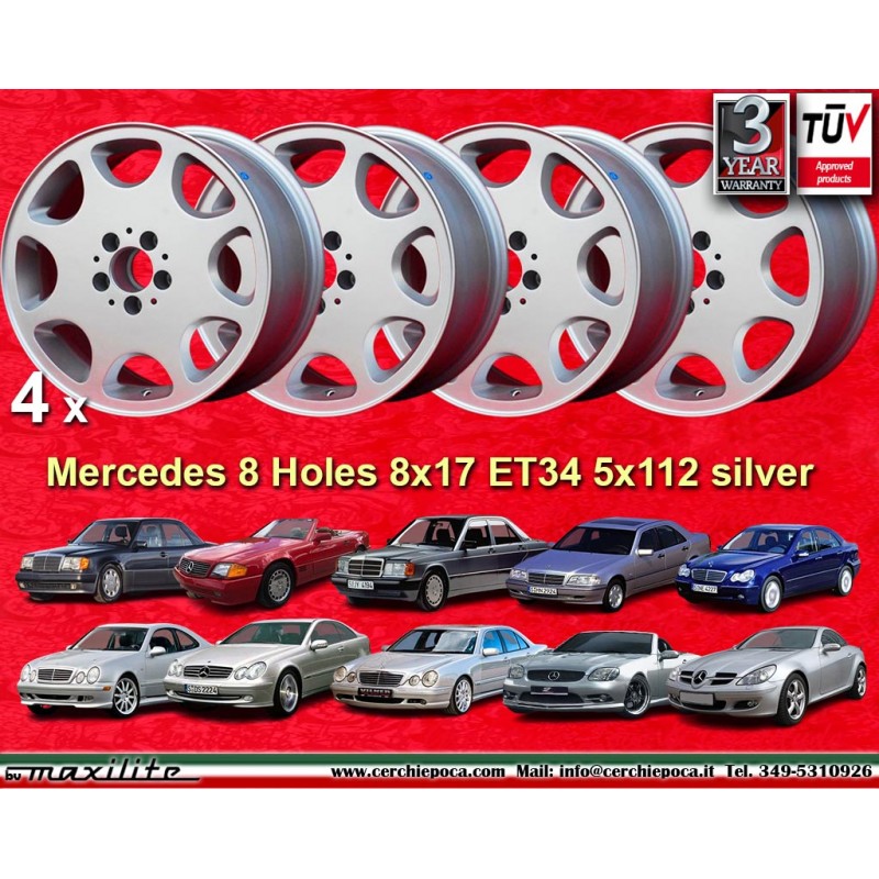 4 jantes 8 Holes 8x17 5x112 Mercedes 124 124 129 201 202 203 208 209 210 HO 170 171 silver