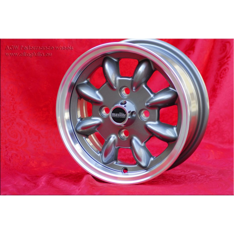 Design Minilite, finition: anthracite/diamond cut, taille: 5x12, offset: ET31 poids Kg 4.5, modele de boulons PCD 4x101.6, alesage central: 65.1 mm. Livre avec kit ecrous de roue: KM2, avec type de filetage: 126. Convient aux voitures: Mk1-3 850 1000 1275 GT. Produit par: Maxilite . IMPORTANT: Verifiez que le kit de visserie est le bon avant d'acheter. Garantie 3 ans par fabricant. Certification TUV disponible (certificat de pieces). Disponible aussi la certification suisse. Retour et remboursement possible pour les produits non utilises sans traces d'utilisation, dans l'emballage d'origine, selon les termes de la loi.